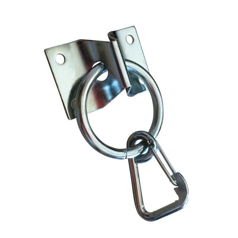Práctica argolla para atornillar a la pared con mosquetón que permite colocar y retirar cómodamente las redes de paja.