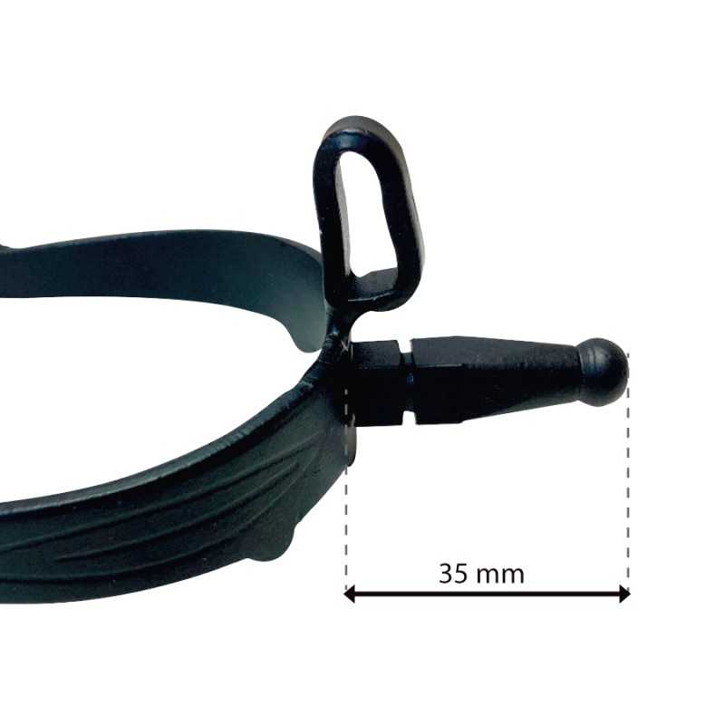 Espuela económica utilizada en la monta tradicional vaquera española, con acabado pavonado y gallo de contacto.