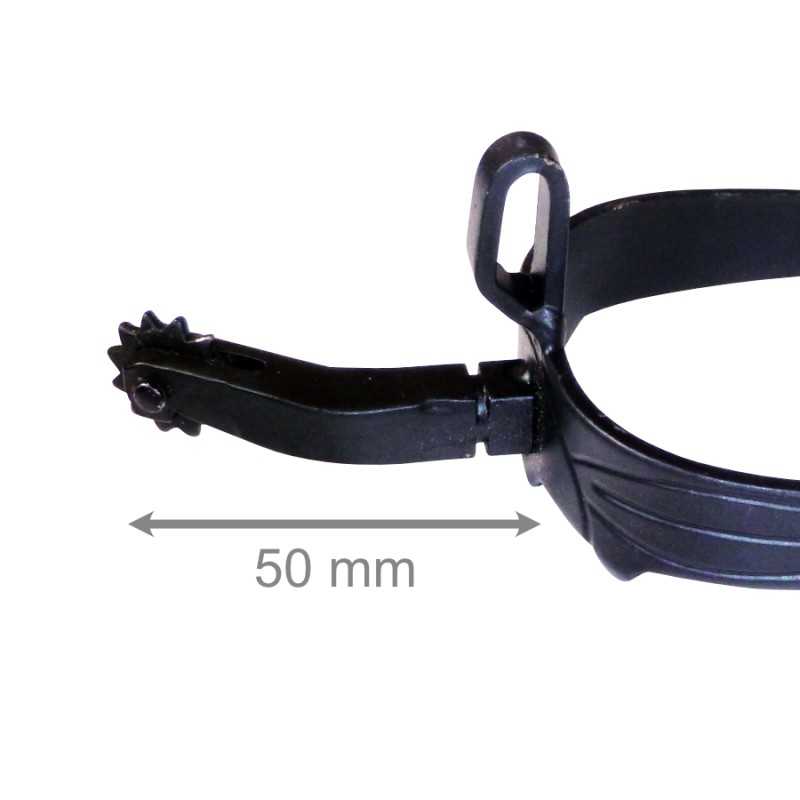 Espuela de estilo vaquero pavonada con ruleta inglesa de 12 puntas.
