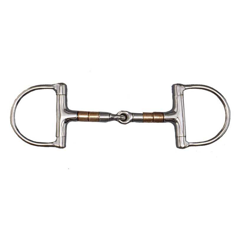 Filete D partido, con rodillos de cobre. Embocadura 13 mm., anillas 65 mm. En acero inoxidable