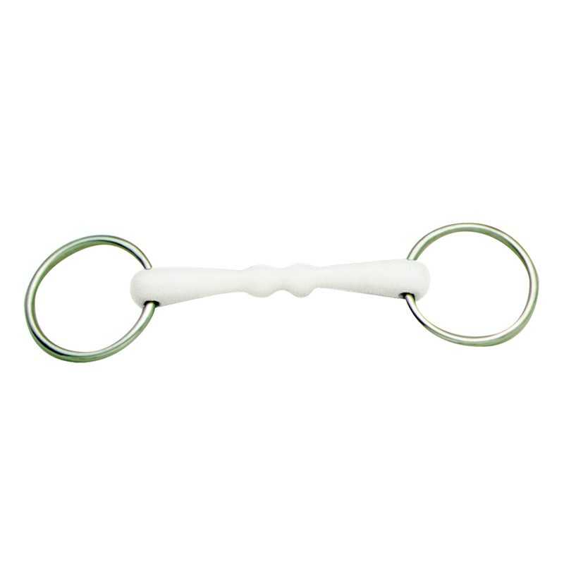 Filete de acero inoxidable, revestido de goma de alta calidad con sabor a menta. El material sintético estimula la salivacion y previene la contractura de la boca. Especialmente indicado para caballos jóvenes o para los que no aceptan el metal.