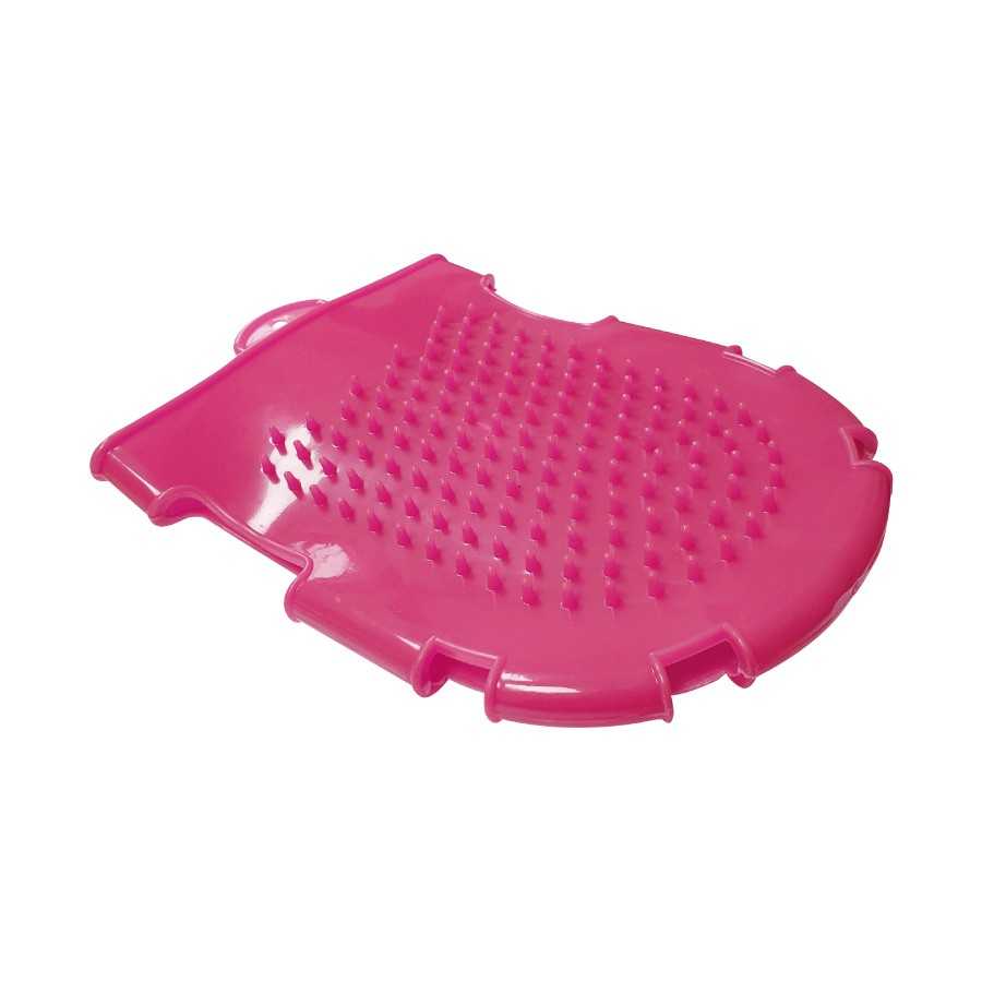 Guante de plástico para el cuidado del caballo con una parte que sirve para cepillar y otra con suaves púas de plástico para dar masaje.