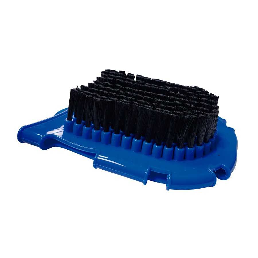 Guante de plástico para el cuidado del caballo con una parte que sirve para cepillar y otra con suaves púas de plástico para dar masaje.
